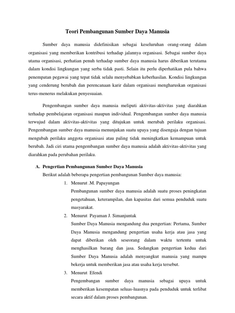 Pengenalan pengurusan sumber manusia pengurusan sumber manusia memainkan peranan yang amat penting dalam mencapai tujuan ataupun matlamat.pengurusan sumber manusia yang cekap dan berkesan akan menghasilkan individu yang berkualiti,produktif dan seterusnya meminimumkan masalah yang berkaitan dengan sumber manusia.masalah ini termasuklah. Pengenalan pengurusan sumber manusia 1. Teori pembangunan sumber daya manusia jadi. Definisi pembangunan sumber manusia pdf. Menurut ilo pertubuhan buruh antarabangsa bahwa pengertian pembangunan adalah suatu yang berpaksikan manusia dengan maksud bahwa setiap proses dapat memenuhi.