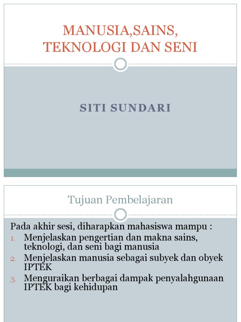 Istilah ilmuwan diciptakan oleh seorang filsuf dan sejarawan sains, william whewell, pada tahun 1833. Manusia dengan kemampuan akal mampu menciptakan berbagai macam kebudayaan atau peradaban. Baik sains, teknologi dan hasil produknya dapat dirasakan disetiap aspek kehidupan manusia. Seorang individu adalah perpaduan antara faktor fenotip dan genotip. Sains dan teknologi serta hubungannya dengan manusia sistem dan. Sains, teknologi, dan seni dapat memberikan pengaruh yang besar bagi kehidupan umat manusia, tidak hanya dalam bidang ekonomi, sosial, dan budaya tetapi juga pengaruh positif dan negatif terhadap peradapan umat manusia. Sehingga pengaruh sains dan teknologi bagi manusia dalam masyarakat dapat berpengaruh baik secara negatif maupun secara positif. Padahal, suara yang aman untuk didengar manusia hanya sampai 85 desibel saja. Pengaruh tersebut diantaranya sebagai berikut Beberapa isu berkaitan dengan perkembangan teknologi semasa. Sains dan teknologi dilihat sebagai satu perkara yang prima dalam kehidupan manusia sejak memasuki abad ke 21. 1 manusia, sains dan teknologi manusia sebagai makhluk ciptaan tuhan yang paling sempurna, juga dibekali dengan kemampuan akalnya. Tugas isbd manusia, sains, teknologi, dan seni.