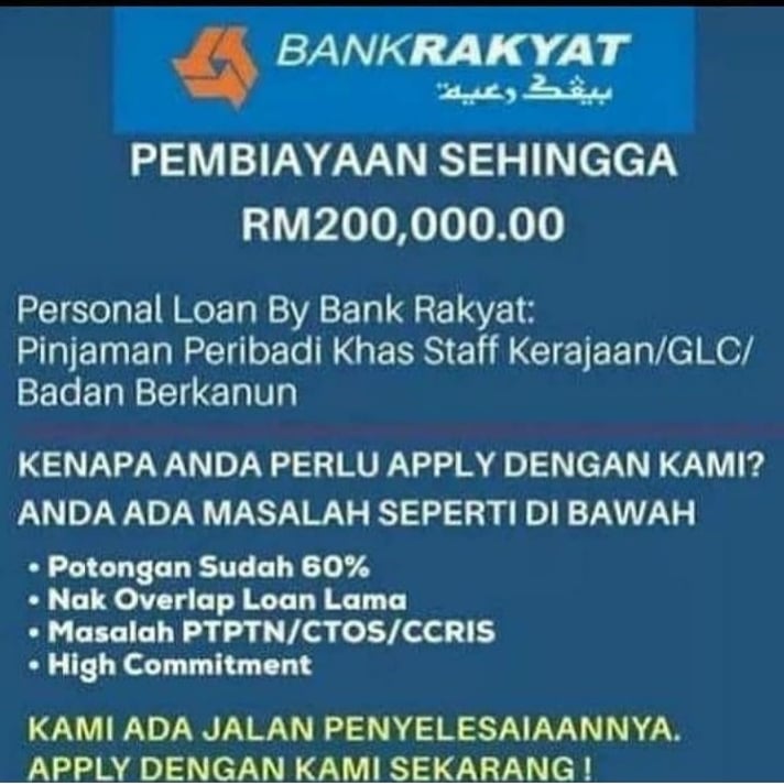 Bank rakyat, pembiayaan, peribadi, overlap, 10 tahun, rm150k, rm150000, mercedes a250 Pemohon dalam program akpk yang tidak lagi dapat memohon sebarang pinjaman bank/koperasi digalakan memohon. Out of curiosity and since ive applied personal loan before this and having other loan commitment ive decided to call them.so what i was offered, im not quite sure whether its good or not. September 12 at 8:14 pm ·. Public employees who have a loan with bank rakyat and want to make overlap with cooperatives, please get first statements early settlement or full settlement with a valid period of the letter of 30 days or more to avoid the problem of the applicant must obtain written statements early settlement again.