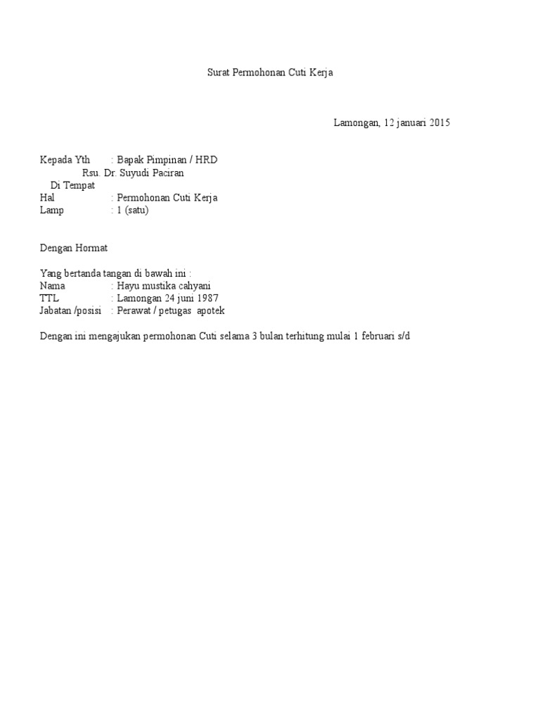 The modifmobilz.com team also provides the picture in high quality resolution (hd image resolution) that may be downloaded simply by way. Jadi total keseluruhannya, yaitu tiga bulan atau sembilan puluh hari. Surat permohonan cuti bisa diajukan jika syarat untuk mendapatkan cuti sudah terpenuhi tentunya. Bali/ 10 juni 1990 jabatan : These are so many great picture list that could become your enthusiasm and informational reason for contoh surat mohon cuti tanpa rekod design ideas for your own collections.